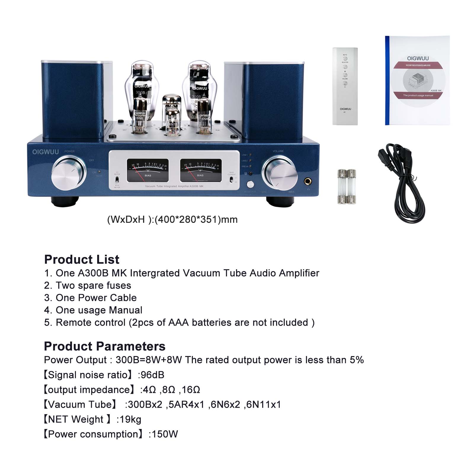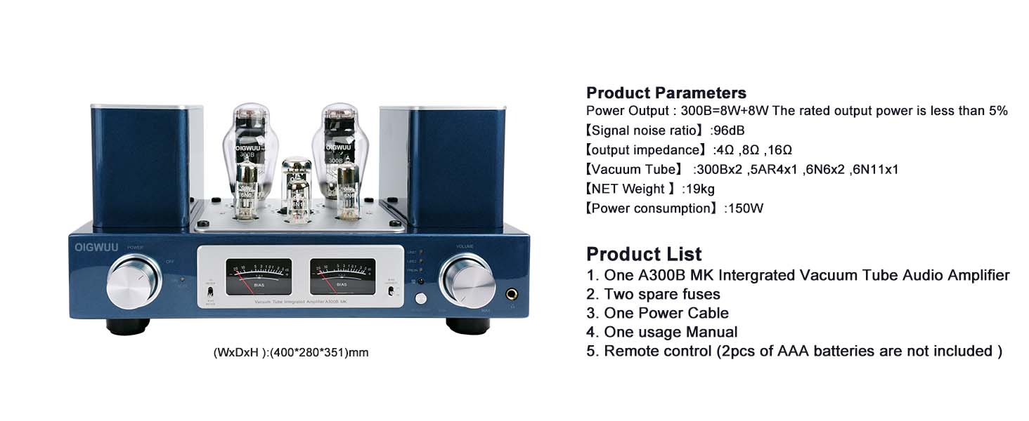 OIGWUU A300BMK Edition Vacuum Tube Amplifier Combo Tube Audio Power Amplifier Upgraded version (In stock)